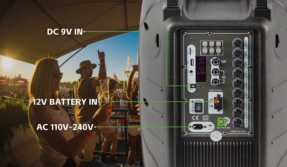 Quedarse sin energía es el mayor riesgo al aire libre. Más allá de la capacidad de la batería, busca opciones de carga flexibles. Los altavoces con carga rápida Type-C y conectividad CC de 12 V te permiten recargar la batería cuando sea necesario. El sistema de triple alimentación de DIPAOER fue diseñado precisamente con este propósito.