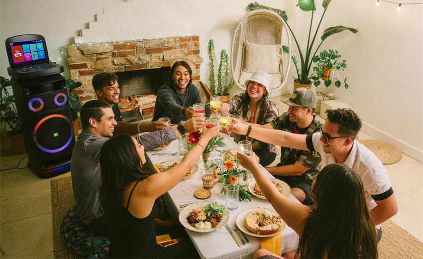 内置7种专业氛围光效,可随音乐节奏同步变幻,一键切换色彩与模式,为欢唱、观影场景营造专属氛围感。