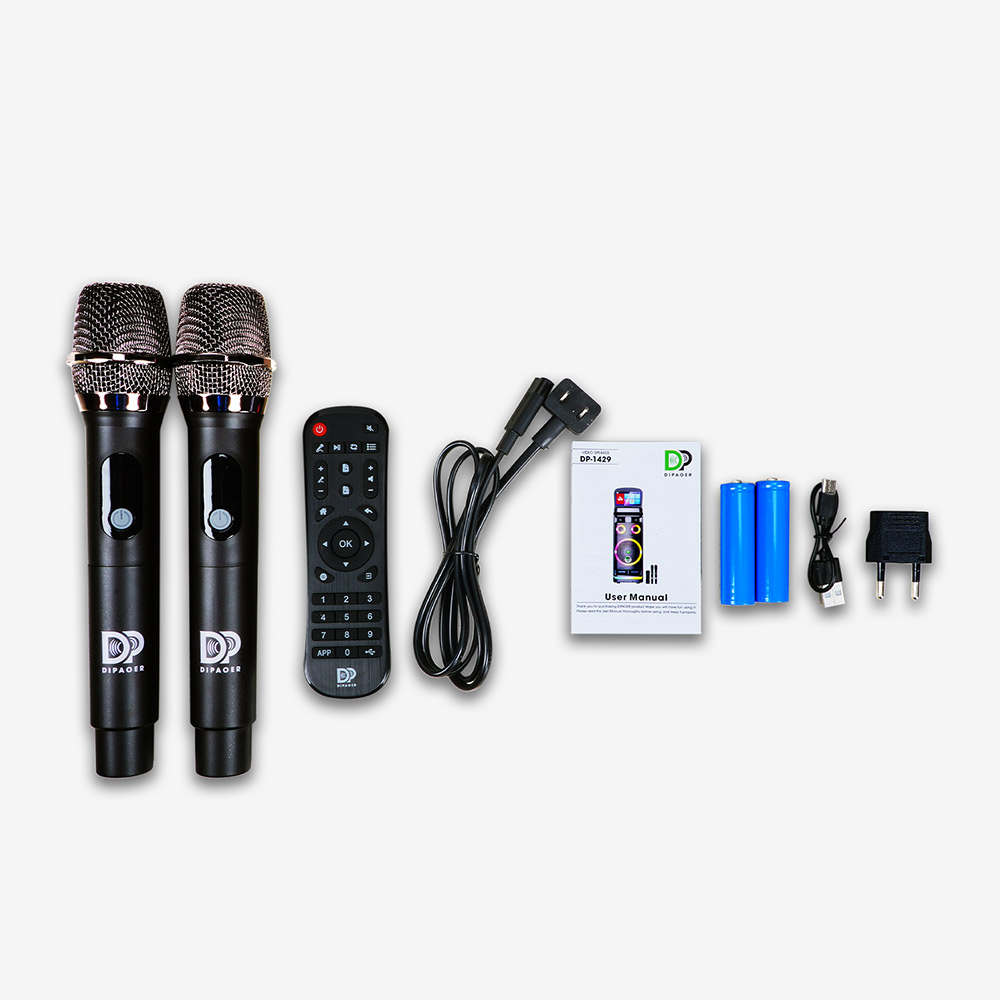 DP-1429 音箱、电源线 ×1、无线麦克风 ×2、遥控器 ×1、用户手册 ×1