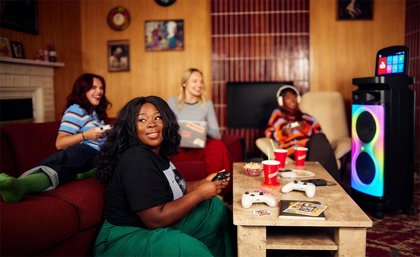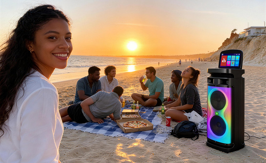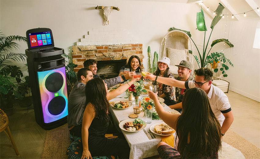 内置7种专业氛围光效,可随音乐节奏同步变幻,一键切换色彩与模式,为欢唱、观影场景营造专属氛围感。