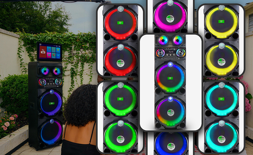内置7种专业氛围光效,可随音乐节奏同步变幻,一键切换色彩与模式,为欢唱、观影场景营造专属氛围感。