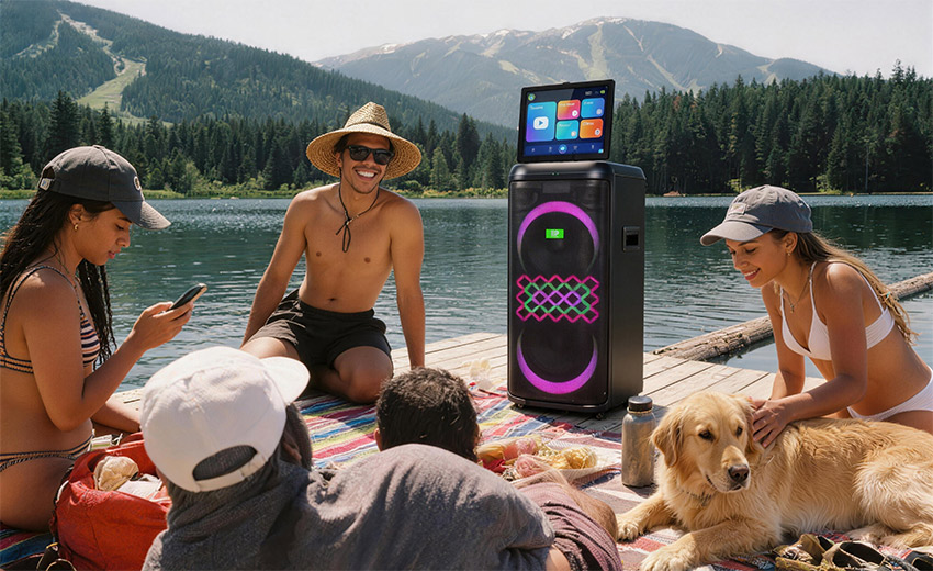 内置7种专业氛围光效,可随音乐节奏同步变幻,一键切换色彩与模式,为欢唱、观影场景营造专属氛围感。