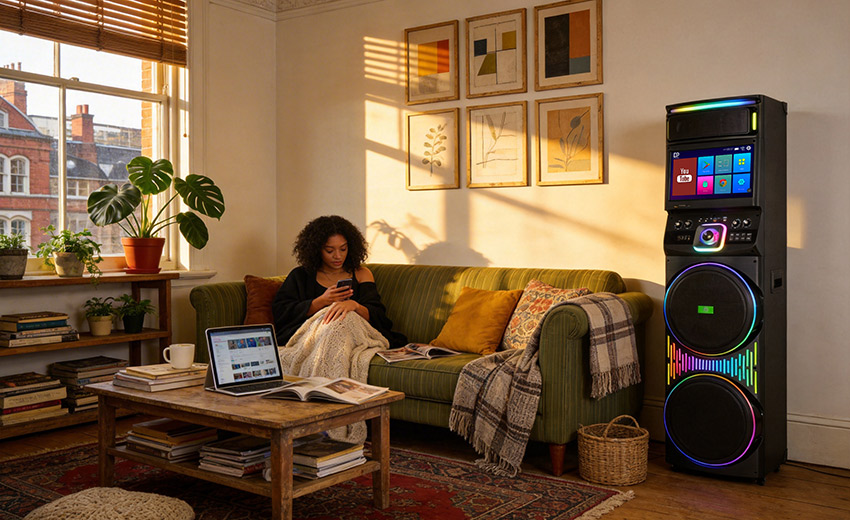 内置7种专业级氛围光效,可随音乐节奏律动变换。一键切换不同色彩与模式,轻松营造摇滚、浪漫、复古等多样派对场景,让音乐不仅是聆听,更是全方位的沉浸体验。
