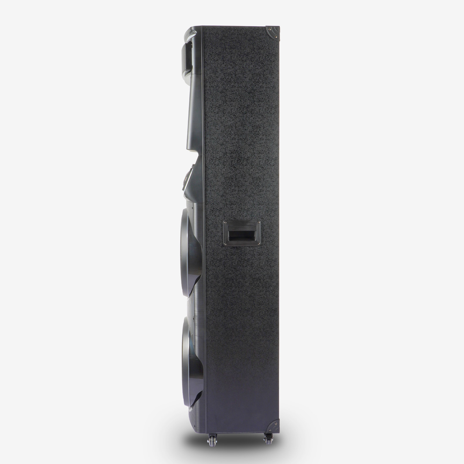 两个12寸低音扬声器、一个80mm高音扬声器