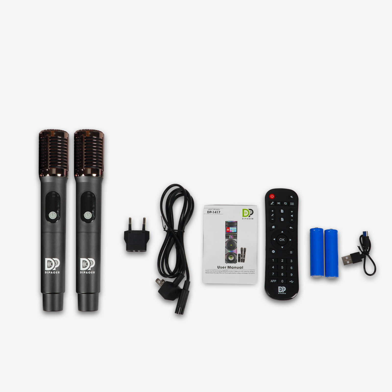 Axiom1417音箱、电源线*1 无线麦克风*2 遥控器*1
