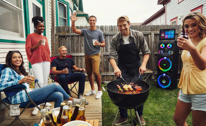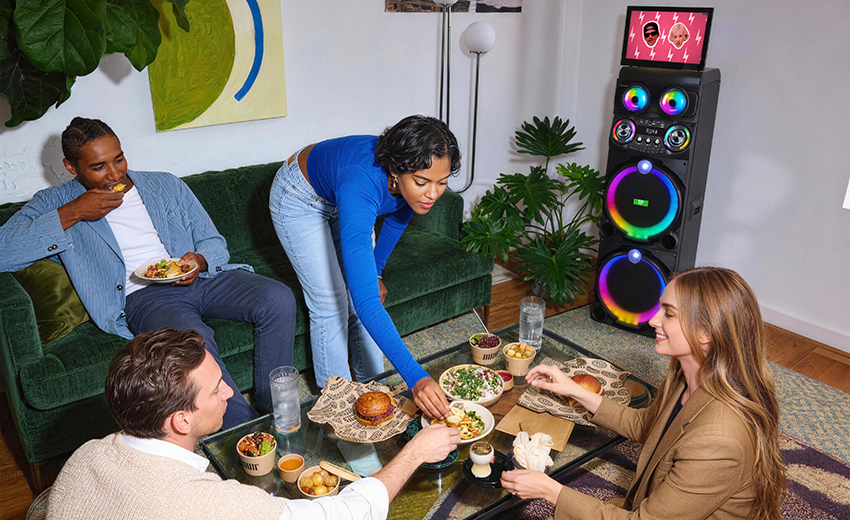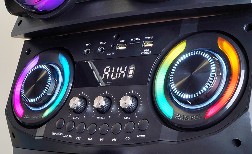 内置7种专业氛围光效,可随音乐节奏同步变幻,一键切换色彩与模式,为欢唱、观影场景营造专属氛围感。