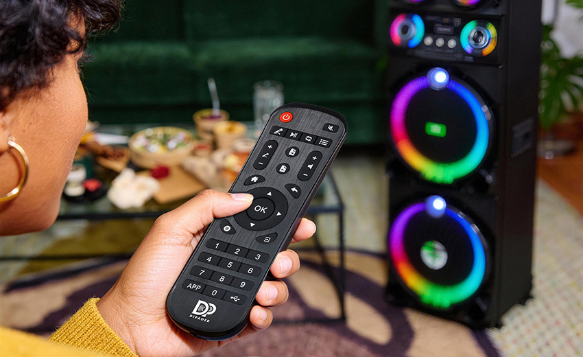 配备红外遥控器,无需配对即按即用,轻松实现选歌、切歌、音量调节等核心操作,老人小孩都能便捷上手。