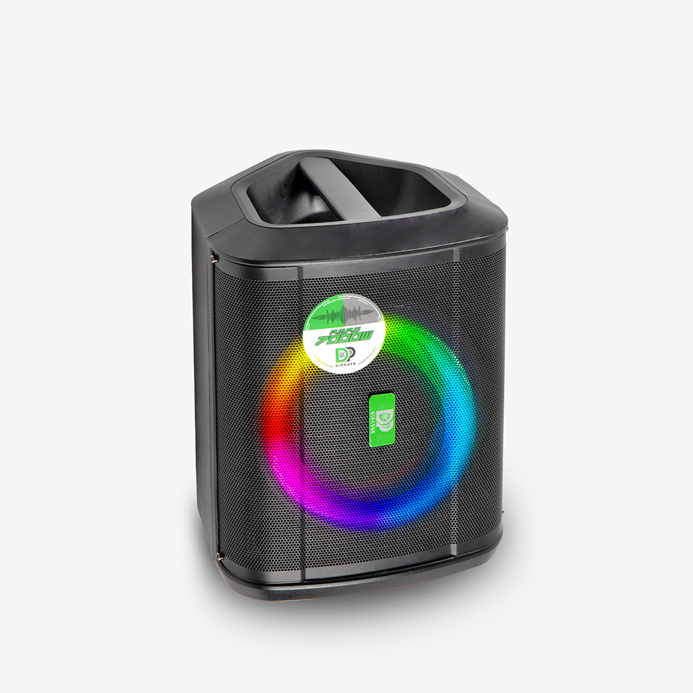LED数显屏,实时显示电量、歌曲信息;配备多功能红外遥控器,可远程控制播放、切换曲目、灯光模式等。