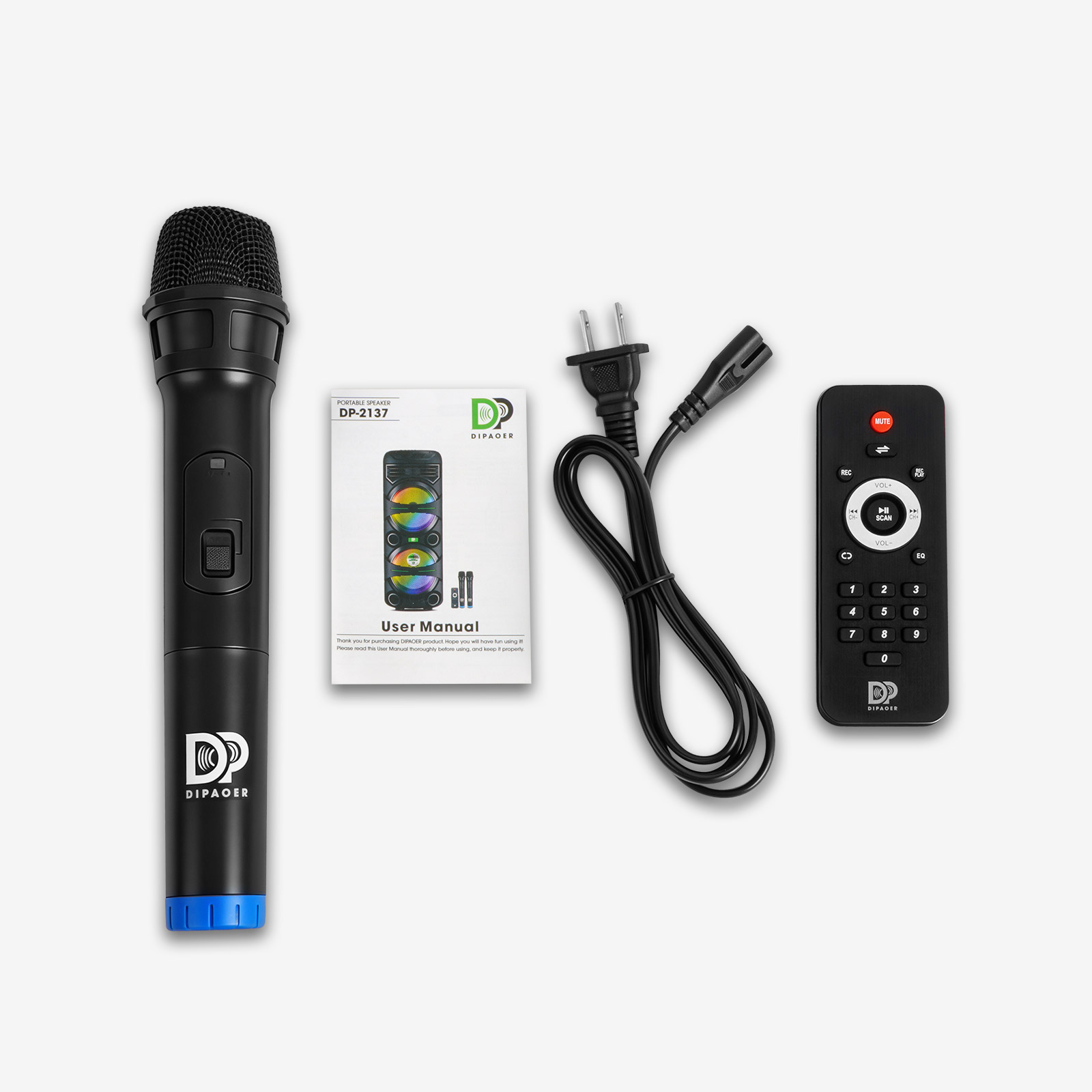 LED数显屏,实时显示电量;配备多功能红外遥控器,可远程控制播放、切换曲目等。