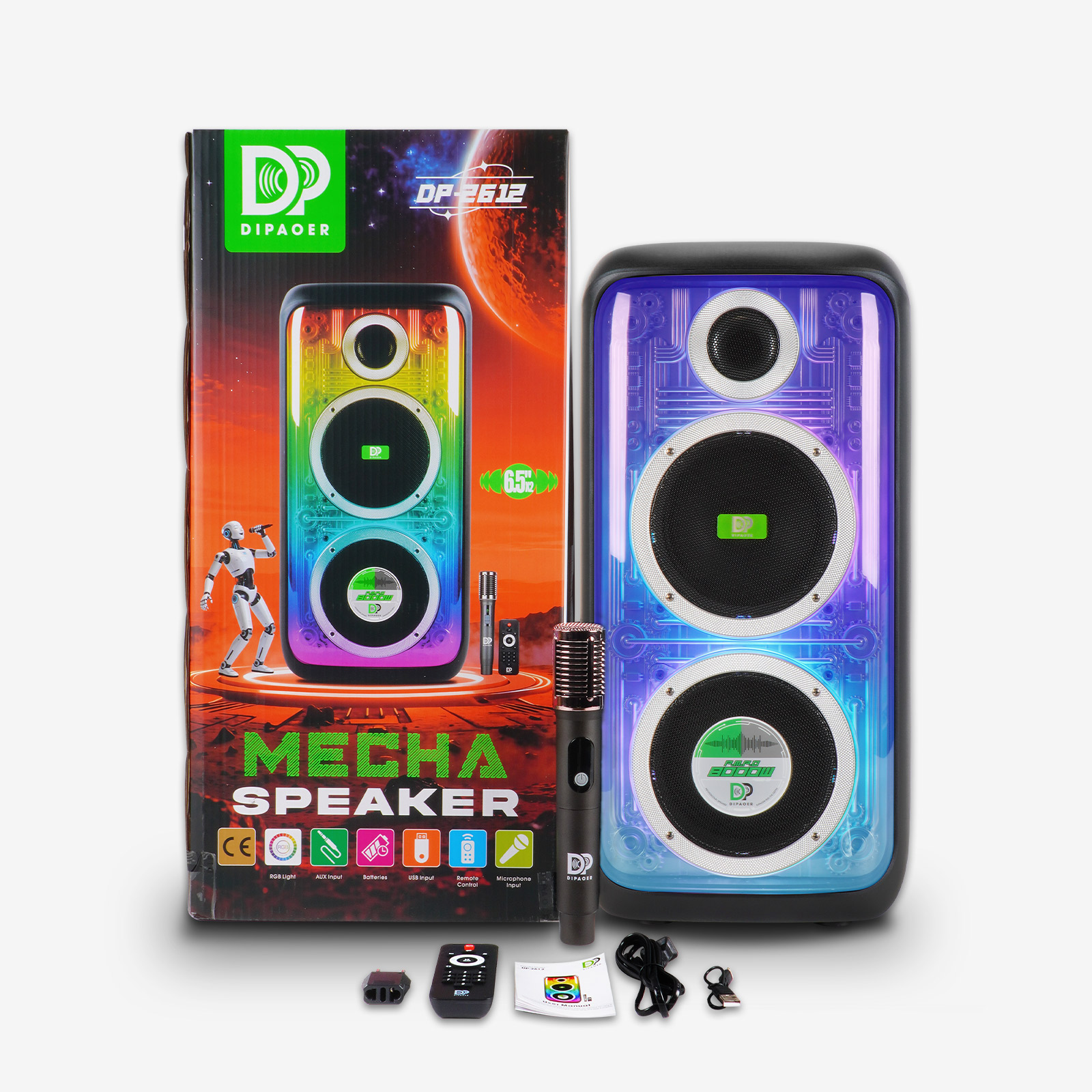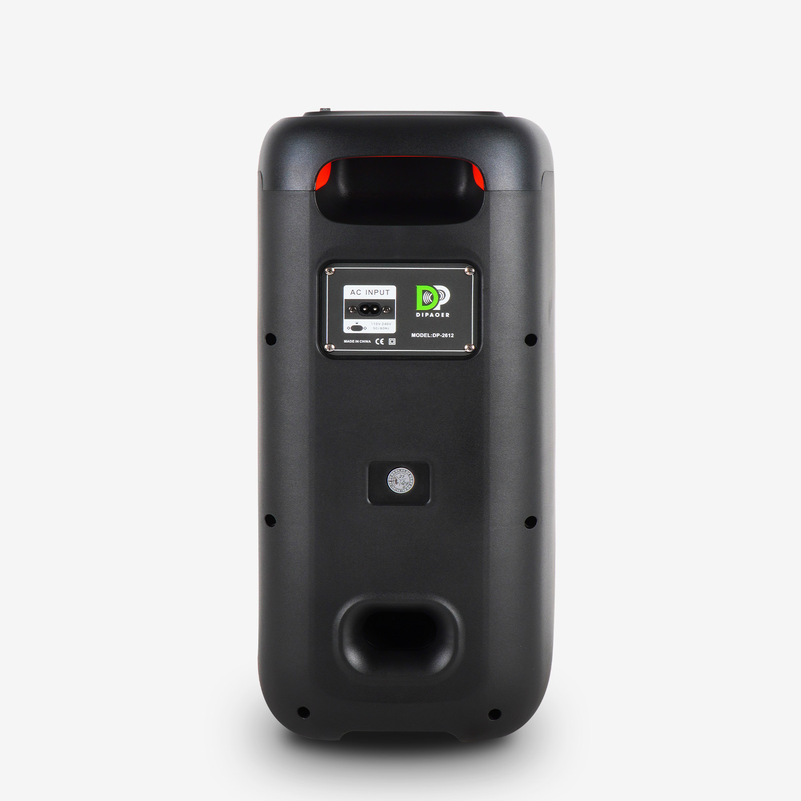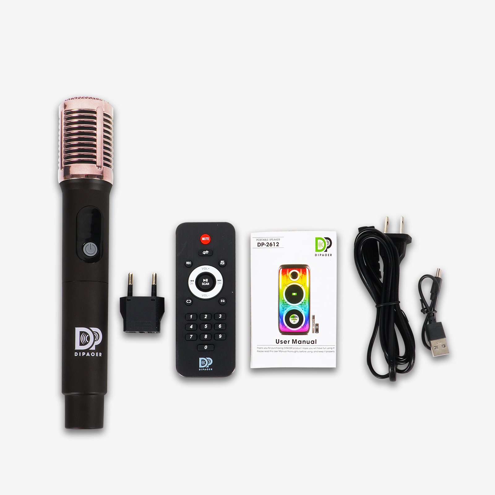 搭载全新设计控制面板,配备CD纹质感大方旋钮,手感舒适;LED数显屏,实时显示电量、歌曲信息;配备多功能红外遥控器,可远程控制播放、切换曲目、灯光模式等;内置一键高清录音功能。